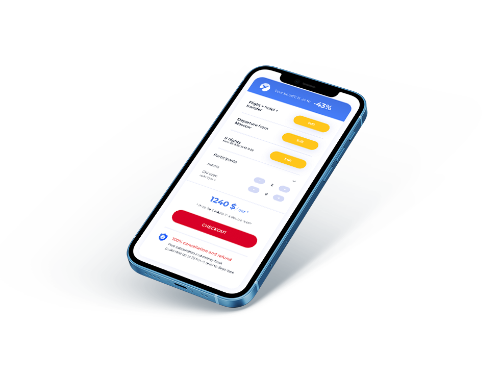 User selects departure city and number of nights, system automatically calculates the cost of a dynamic tour package